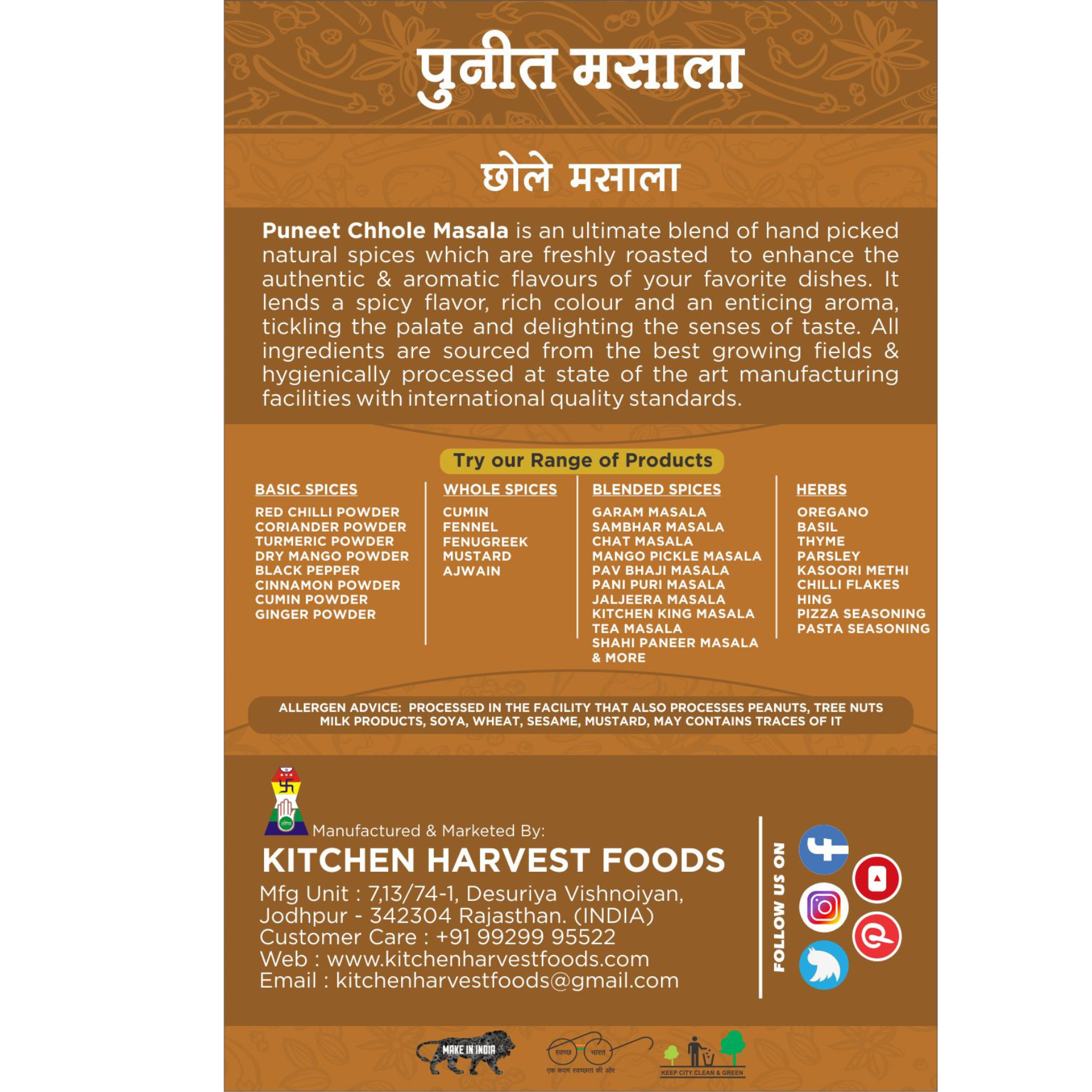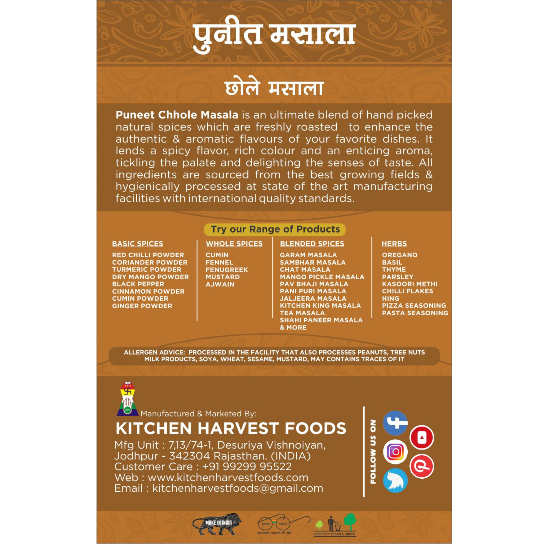 Embark on a culinary journey with Puneet Masala's Chole Masala, a meticulously crafted spice blend designed to elevate your dishes with the authentic taste of Indian cuisine. Immerse yourself in the rich, spicy, and aromatic goodness that defines this premium spice blend. Whether you're preparing classic chole recipes or experimenting with new culinary creations, Puneet Masala ensures an exciting adventure for your taste buds.