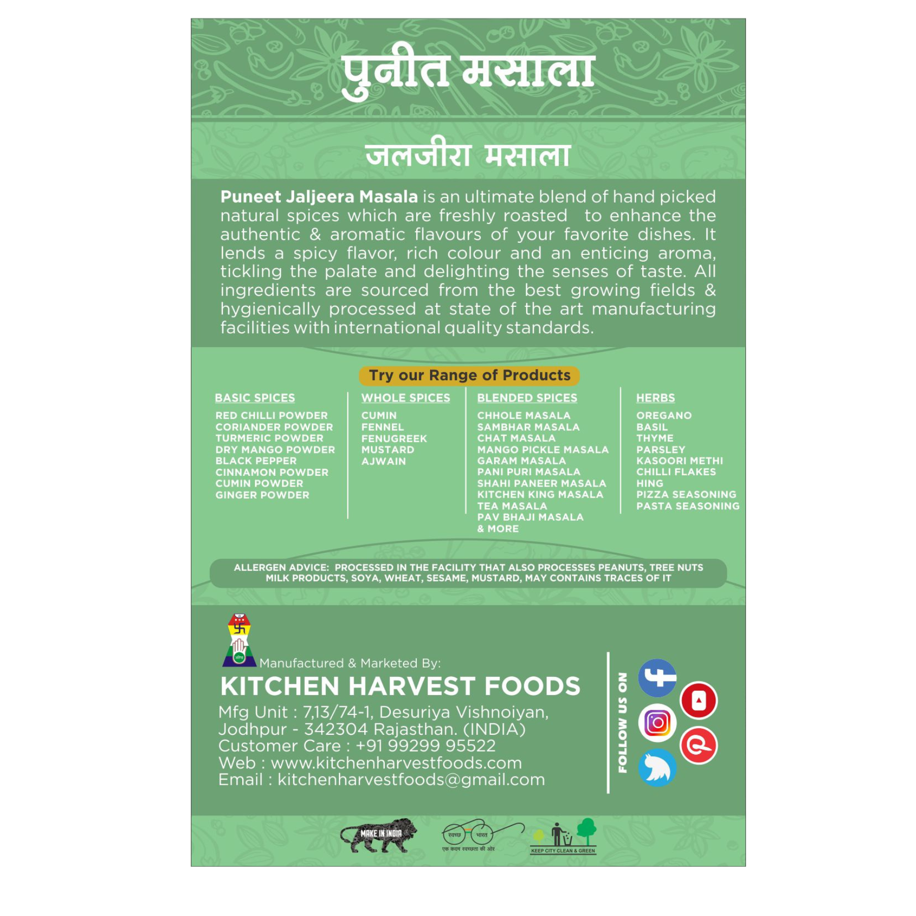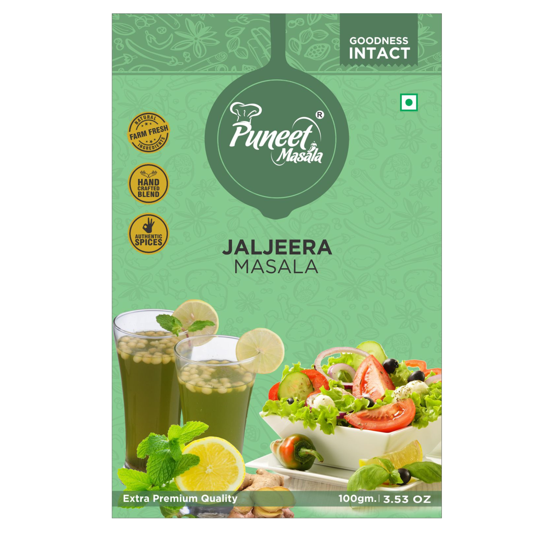 Puneet Masala's Jaljeera is a refreshing spice blend crafted to invigorate your beverages with the authentic taste of Indian flavors. Meticulously curated from premium spices, this jaljeera mix provides a perfect balance of tanginess, spiciness, and aromatic goodness, ensuring a delightful twist to your drinks.