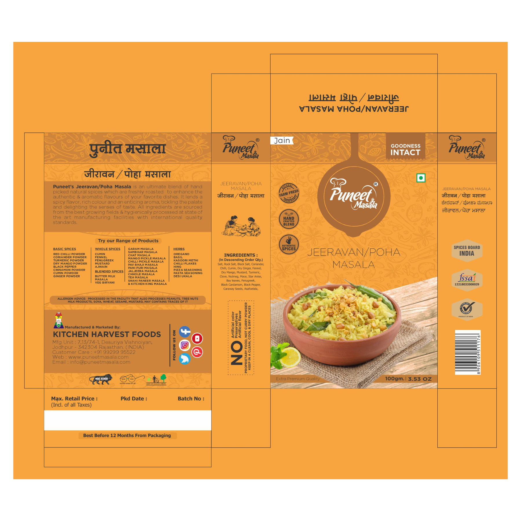 Puneet Masala's Jeeravan Poha Masala is a tantalizing spice blend meticulously crafted to enrich your meals with the authentic taste of Indian cuisine. Specially curated from premium spices, this masala offers the perfect balance of jeera (cumin) and aromatic goodness, ensuring a burst of flavor that transforms your Poha into a culinary delight.