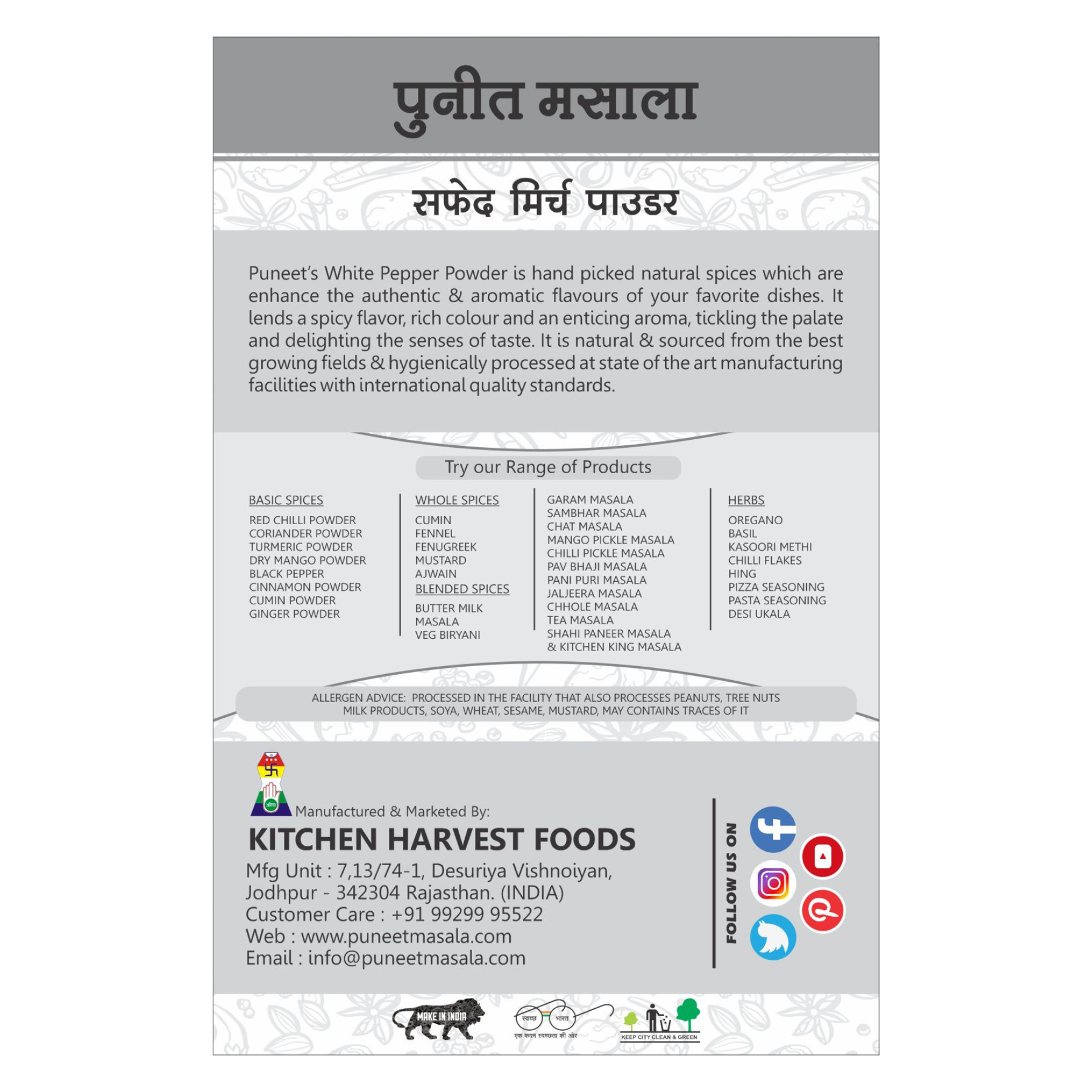 Puneet Masala's White Pepper Powder is a culinary masterpiece, meticulously crafted to add a touch of elegance to your dishes. Sourced from premium spices, this exquisite spice blend promises a perfect balance of warmth and a mild kick, ensuring a delightful experience with every sprinkle.